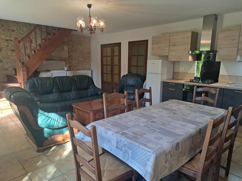 voici la salle à manger Exposée au Sud-Est et donc très bien éclairée, spacieuses, située juste à côté de la cuisine pour en profiter un maximum avec les portes-fenêtres équipées de moustiquaires, donnant sur une terrasse, puis sur le jardin clôturé et la piscine |