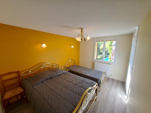 un salon salle à manger de 40M2, avec cuisine et éléments encastrés, Une salle de bain, une salle d'eau, 2 WC, d'une surface totale de 115 M2, mitoyenne avec nous, mais totalement indépendante et sans vis à vis. Elle possède sa propre piscine de 10 X 4.5m clôturée, sécurisée, avec escalier et à usage exclusif du gîte. Elle a 2 terrasses et un jardin clos. La piscine est chauffée de mi juin à mi septembre+ bâche à bulles Couchages : A l'étage, une chambre, moyenne, avec un lit de 140, une autre, moyenne aussi, avec un lit de 140 plus un lit de 90. Au rez de chaussée, 1 chambre avec un grand lit et Un lit denfant, à barreau, WI FI gratuit |